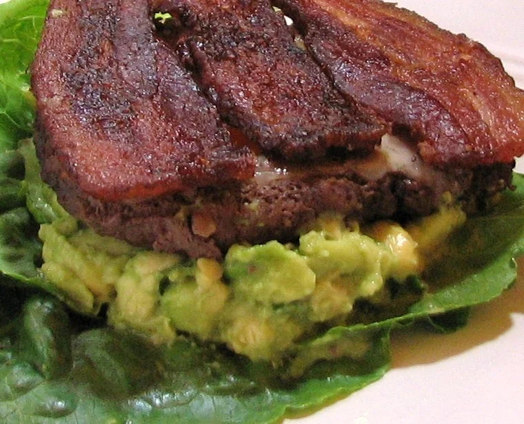 The inspiration for this recipe was the guacamole bacon burger from the Red Robin. I changed the guacamole and the cheese, partially so that people who don't tolerate nightshades could try the recipe with modifications.